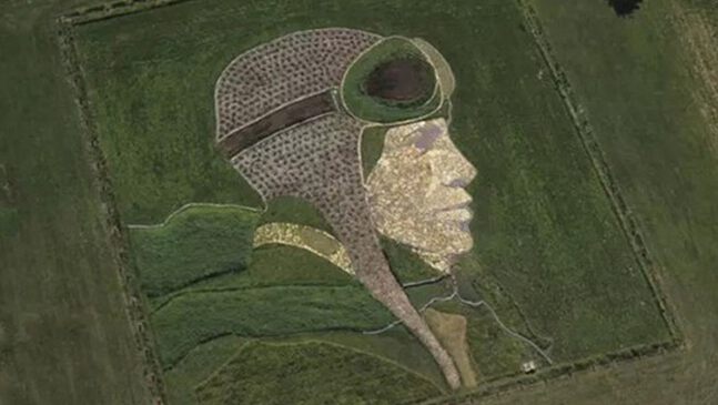 他的第一幅地景创作完成于1981年,在约65万平方米的麦田上,“画”的是抵抗欧洲入侵者的,基奥瓦人领袖Satanta的肖像。