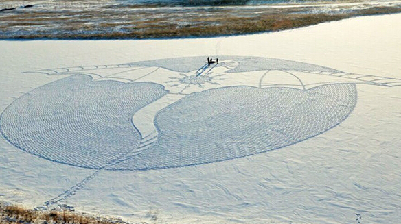 这位雪地艺术家近年来一直坚持在雪地上进行创作,他的一幅作品往往需要艺术家亲自在雪地里走上至少5到10个小时,更久地甚至需要花上一整天的时间。而今年,在世界上最冷的地方之一——西伯利亚雅库茨克,Beck又用双脚在雪地里“走”出了一个巨大的龙型图腾。据了解,Beck此次创作的这副龙型图案作品是为了一部俄罗斯电影《龙》(Drakony)。(从IMDB看这部电影会在2015年上映)