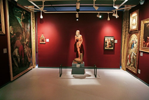 所以,参观这里将有完全不同的体验:当代作品和古典作品不再泾渭分明,雕塑和架上绘画也没有分门别类,食材类艺术品则与家具类作品同时呈现。每一件作品除了标明常规的时间、作者、作品名,还会在靴子形的地图上标出作者创作时的所属地域。