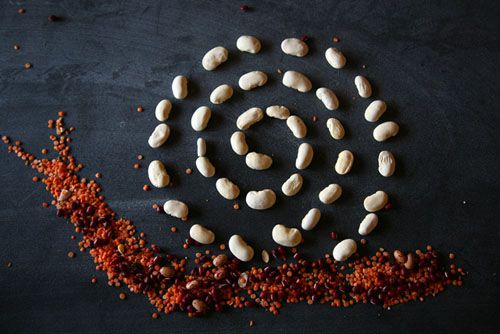 红豆、麦子等各类作物分类堆在桌上,可随意取用拼图,上一个坐下来玩的参观者留下了豆子拼成 Slow Food 大蜗牛,豆为壳、谷作身、眼睛是两颗晒干的红豆——蜗牛也是皮埃蒙特地区的一大美食,选用来自切拉斯科的蜗牛,蘸上大蒜和黄油的混合酱汁,或者辅以橄榄油、番茄和大蒜制成的沙司,美味无穷。