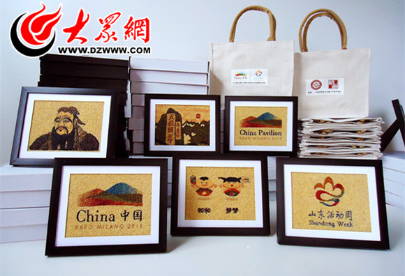即将参加米兰博览会展览的东明粮画作品及包装袋