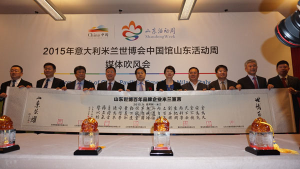 山东世博百年品牌企业共同发表米兰宣言。