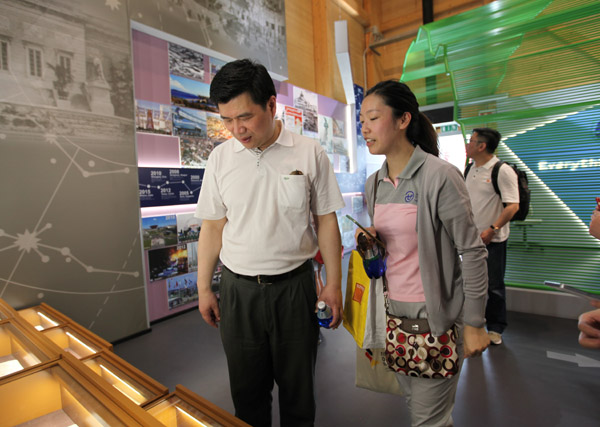 意大利米兰当地时间6月5日,上海市文化广播影视管理局副局长贝兆健一行参观世博园区。在世博会博物馆展馆,贝兆健副局长肯定了展馆及VIP接待工作,对展馆工作人员进行了亲切的慰问,并表示前方工作比想象中辛苦很多,提出世博馆要从更长远更高端的角度来考虑参与今后的世博会。