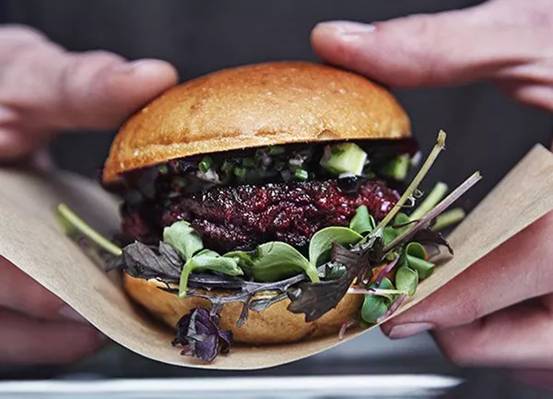 这个虫子汉堡包括100 克甜菜根,50 克防风草,50 克土豆和50 克的甲壳虫幼体,只看图片的话,这款汉堡可是相当诱人的。