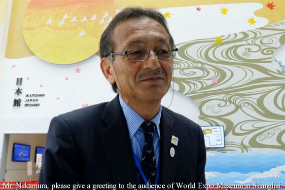 阿斯塔纳世博会期间,世博会博物馆对园区开展了系列调研工作,包括展品征集、对园区和场馆的实景拍摄,采访各参展方总代表、馆长等,为世博会留存历史档案。7月9日,世博馆对日本馆政府总代表中村富安先生进行了专访。