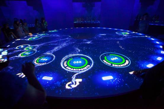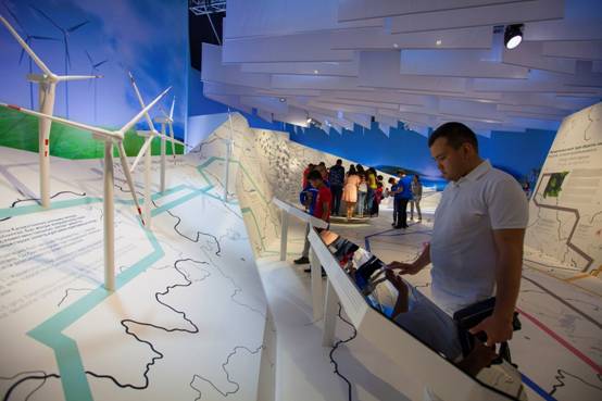展馆最精彩部分就是最后的激光表演部分,在展厅中央有一个直径八米的圆桌,所有的观众都得围在桌边,激光会显示出每个人都是一个非常重要的能源生产者,每把电子钥匙上会显示收集到的能量,他们会被放在这张桌子上的凹槽里。在那之后,观众会看到所有的能量团结成一个大的能量核心,然后看到它如何改变世界……