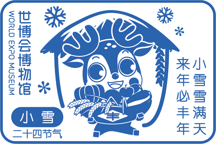 “小雪”是中国二十四节气中的一个。进入该节气,中国广大北方地区西北风开始成为常客,气温下降,逐渐降到0℃以下,但大地尚未过于寒冷,虽开始降雪,但雪量不大,故称小雪。“小雪雪满天,来年必丰年”就是古人对“这个节气的谚语。印章的设计也紧扣此句谚语,用雪花元素,以及丰收的农作物和粮仓的形象来表达含义。