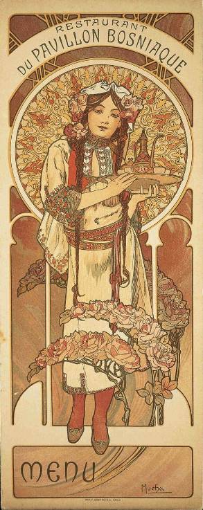 慕夏设计的1900年巴黎世博会波斯尼亚展馆餐厅菜单
