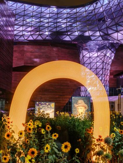 夜间开放区域为:特效影院、“梵高再现”观展区域和咖啡厅。