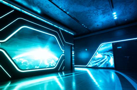 世博特效影院位于世博会博物馆游客服务中心二楼,拥有120个动感座位。影院具有国内首个超大多幕联映系统及全球最先进的4K3D激光放映机、多维全景360度环绕声场、定制设计的“探索者”极限动感特效座椅、以及全沉浸舞美智慧联动光影特效。