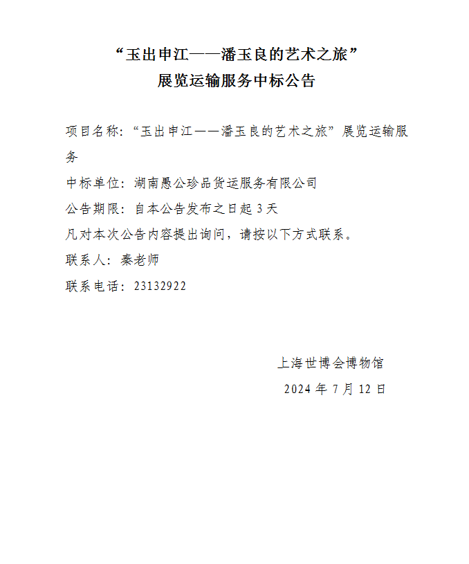 “玉出申江——潘玉良的艺术之旅”展览运输服务中标公告