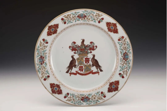 Canton Porcelain combines Jingdezhen white porcelain with Western aesthetics. Pieces such as the Kwon-glazed Plate with the Badge Pattern of Earl Ross and the Kwon-glazed Porcelain Plate with the Design of the Judgement of Paris retain traditional Chinese painting techniques while incorporating European motifs like family crests and mythological stories, serving as vivid testimonies to Sino-Western cultural exchange.