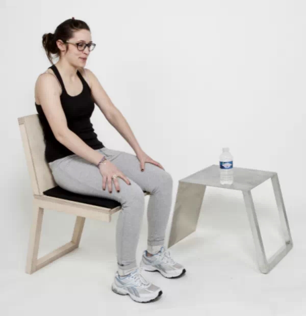 2 Fit 由两个模块组成,木质的椅背、坐垫和两个后腿组成其中一个模块,剩下的部分是由金属制成的第二个模块。办公的时候它就是一个普通的椅子,但想要运动时,只需把第二模块向外拉出,铺上垫子,再把椅背拉升,就可以做简单的仰卧起坐等简单的腰部运动。