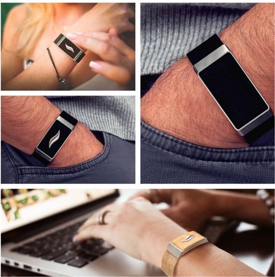 Leaf女性智能手环是 Bellabeat专为为女性设计的智能手环,并且可以一直使用它直到你生命结束。Leaf的主体采用木材制成,不锈钢的叶面进行加固,造型上则采用了树叶的天然造型,简约而不失高雅。Leaf在具有普通手环的基本功能之外,它还能够检测女性各种活动和数据,例如经期、避孕药摄入量、排卵期等,甚至可以通过记录你的呼吸情况,判断你的压力水平。
