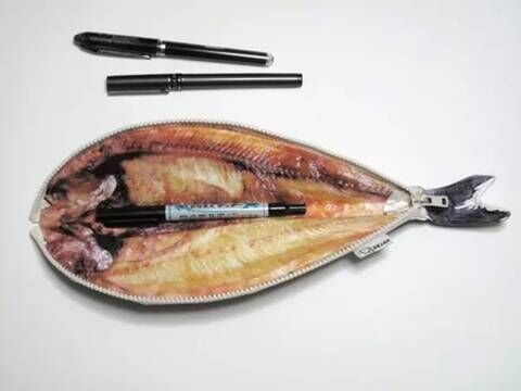 设计师乙幡啟子某天在居酒屋吃饭,看着盘子里的烤鱼,突然灵光一闪就做出了这款笔袋。打开笔袋还能清晰地看到鱼的内脏纹理。