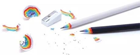 区别于普通的木制铅笔,彩虹铅笔的笔杆由回收的可再生纸制作,因为采用了六层鲜艳各异的再生纸,所以每次削铅笔时,你都能削出一道道令人心神愉悦的完美彩虹。
