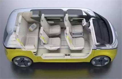 I.D.BUZZ概念车是一辆电动车,功率为369匹马力,续航超过400公里。车内没有物理按钮,包括开门都是触摸操作,并且还具有自动驾驶设计,车里座位可以随意摆放。