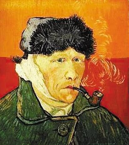 资料图:梵高割下耳朵后创作的著名画作《耳朵缠着绷带的肖像》。