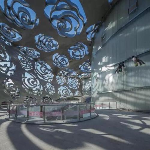 为举办2016年世界月季洲际大会而打造的月季博物馆,是由NEXT建筑事务所John van de Water和蒋晓飞主设计。灵感来自中国传统月季花纹饰丝绸。采用建筑手法打造了一个有丝绸般华美的月季花式的建筑体。
