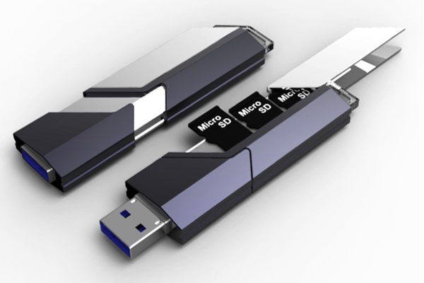 设计师Fang-Chun Tsai设计了一款酷炫的聚合U盘,构想十分简单,就是将小容量的内存卡插在这个扩展槽上,组成一个大容量U盘,如同一把精致的瑞士军刀。